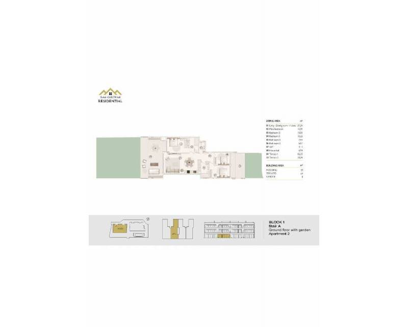 Layout: The complex comprises two blocks offering 2- and 3-bedroom apartments, each with 2 bathrooms. The apartments feature spacious terraces that provide panoramic views of the golf course and the Mediterranean Sea.