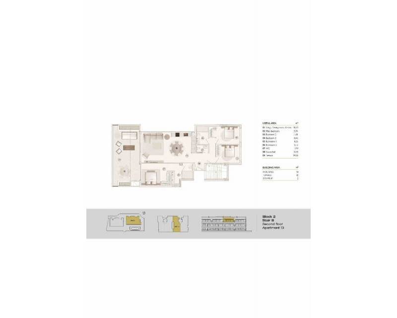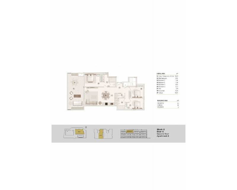 Layout: The complex comprises two blocks offering 2- and 3-bedroom apartments, each with 2 bathrooms. The penthouse apartments feature spacious terraces and a rooftop solarium that provides panoramic views of the golf course and the Mediterranean Sea.